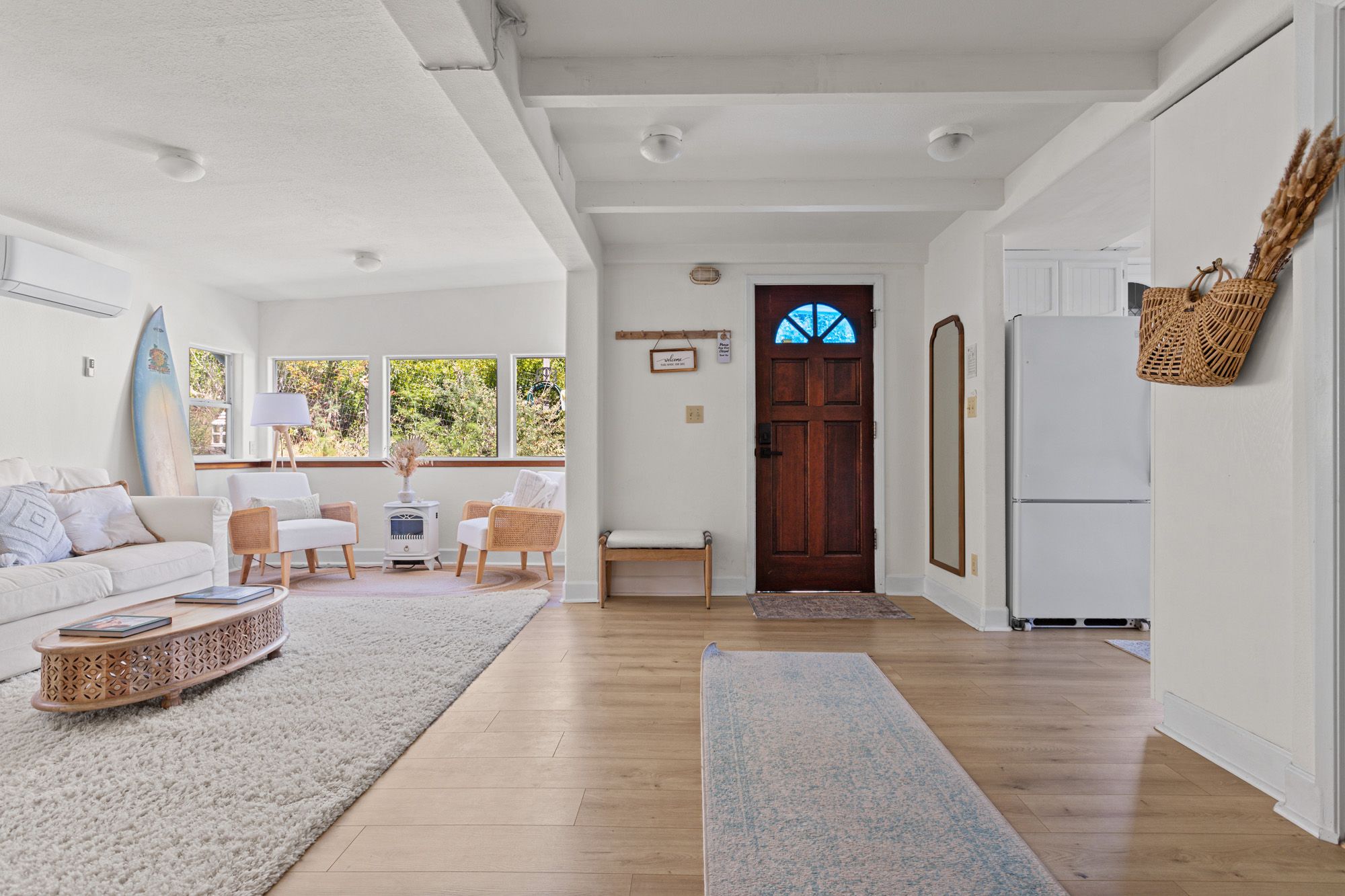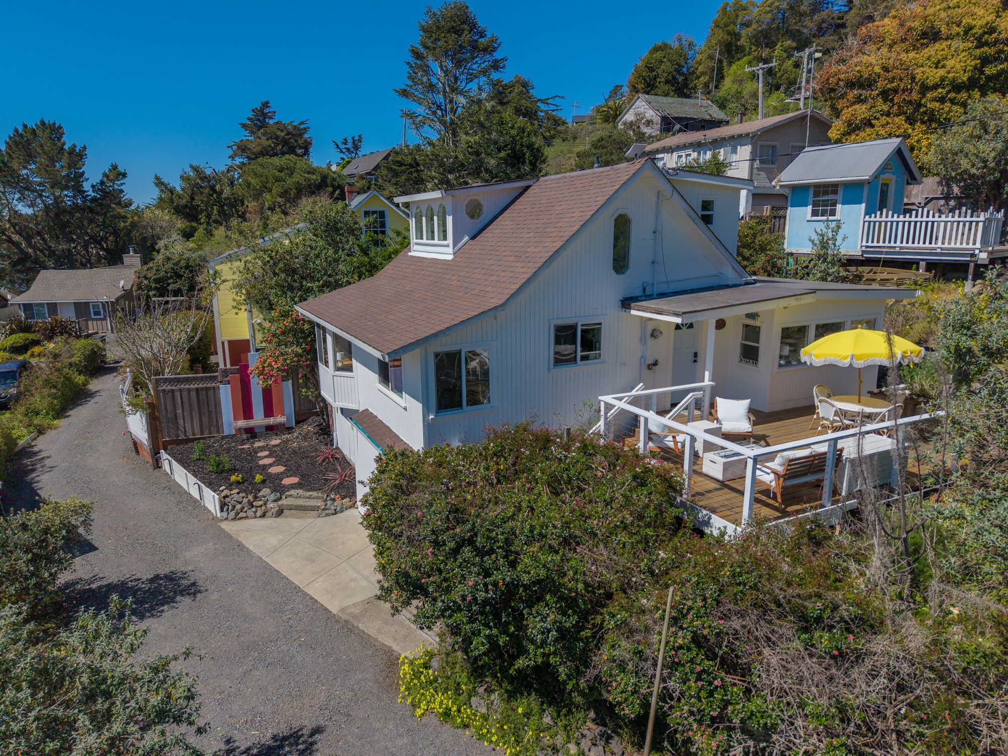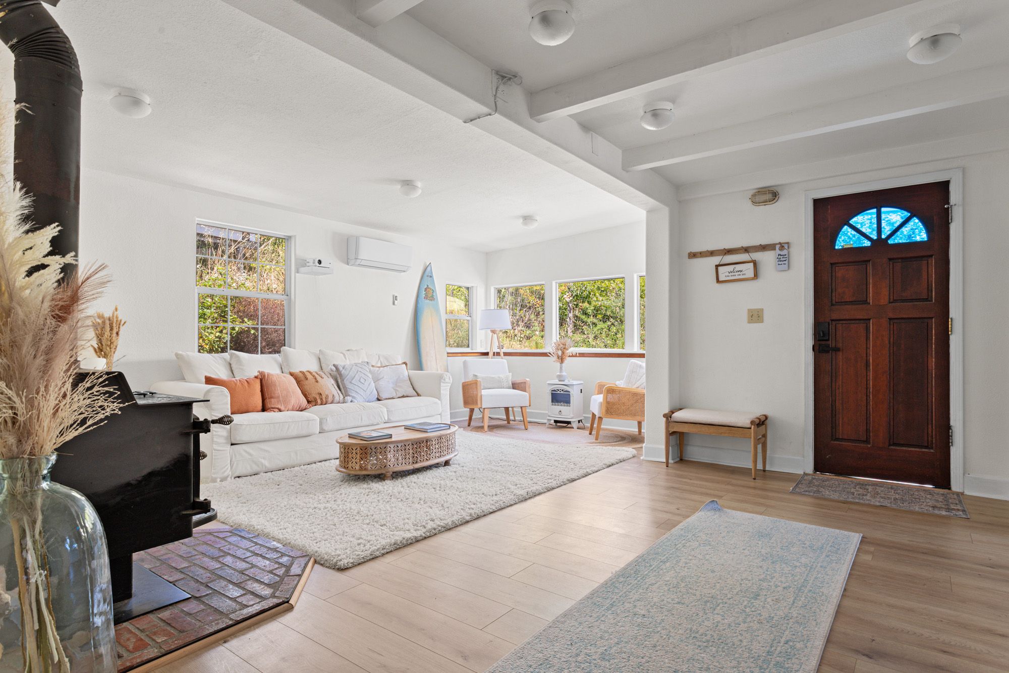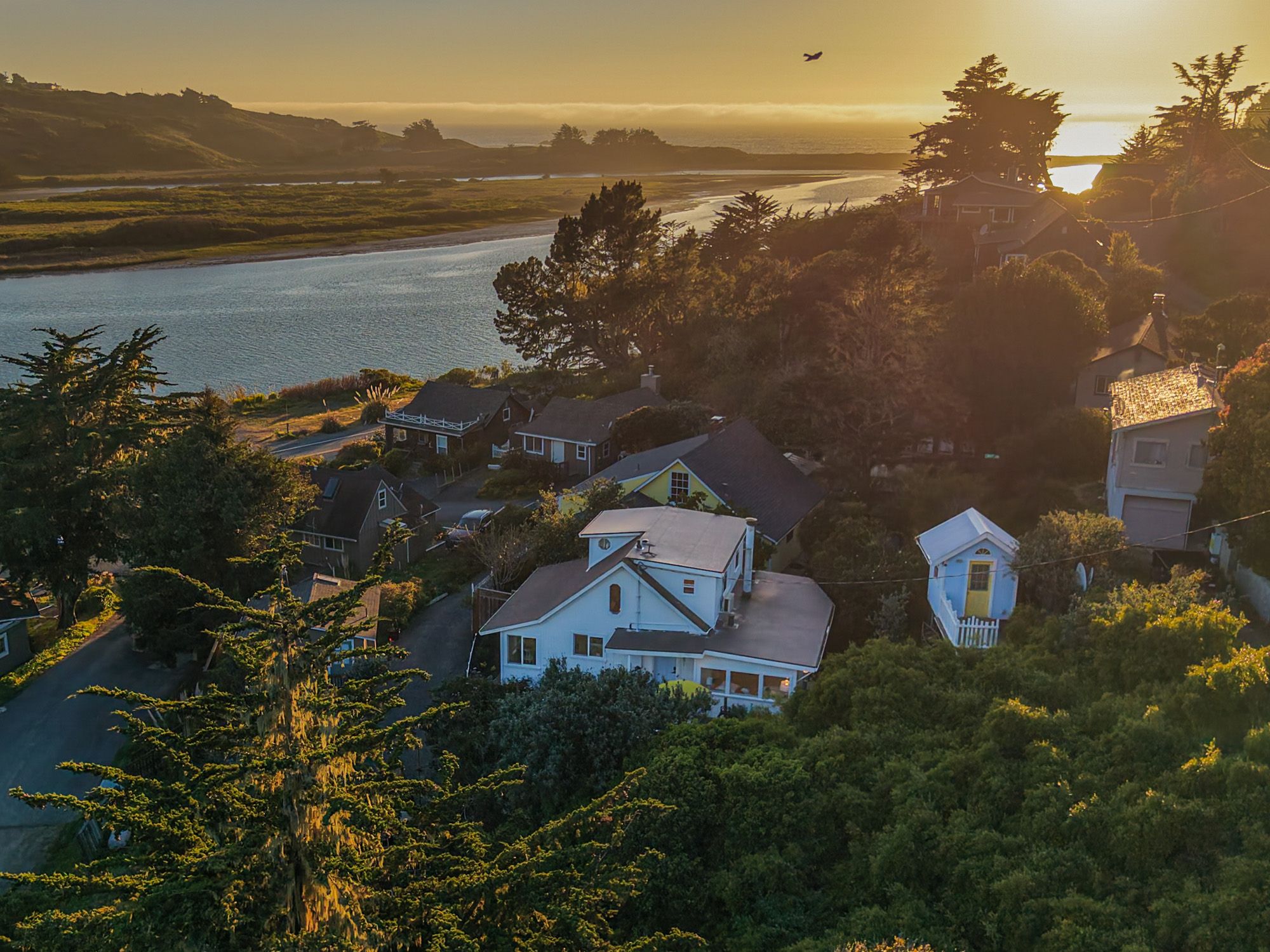 Overlooking the breathtaking meeting point of the Russian River and the Pacific, this coastal retreat captures the essence of Sonoma County living, where relaxation meets opportunity. Currently a sought-after Airbnb with a proven record of strong reservations, it offers a seamless blend of lifestyle and investment potential in one of Northern California’s most captivating locations. Nearly a century old and lovingly refreshed, the home radiates character and coastal charm. Sunlight dances through well-placed windows, framing ever-changing water views and filling each room with a soft, ocean-kissed glow. Gentle breezes and the scent of salt air, create an atmosphere guests fall in love with and return to time and again. Inside, two spacious bedrooms and two beautifully finished bathrooms offer classic comfort, including a clawfoot tub that invites long, luxurious soaks after beach walks. The kitchen is rich with vintage character. The living room features a cozy wood stove alongside updated mini splits for effortless year-round comfort. Step outside onto the view-facing deck, the perfect perch for sunset cocktails or lazy morning coffee as fog drifts over the river mouth. Just minutes from Goat Rock Beach, the Russian River, and an easy stroll to town and the famous Cafe Aquatica, the home sits amid Sonoma’s best; kayaking, wine tasting, coastal trails, and farm-to-table dining. Whether you’re adding to a vacation portfolio, searching for a revenue-generating getaway, or longing for a place where every day feels like a coastal escape, this property delivers an irresistible opportunity in one of California’s most scenic settings.